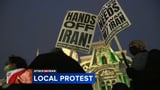On Monday night, a smaller group protested the U.S. approach to war with Iran, opposing President Trump’s decision to engage militarily.